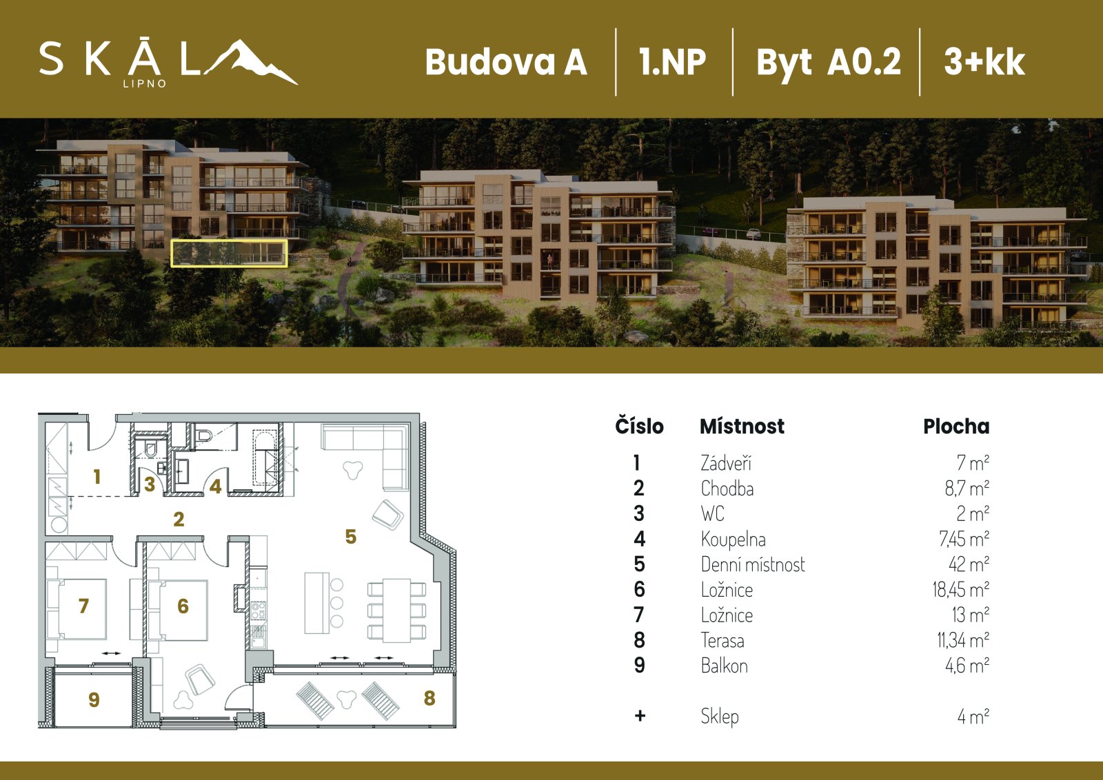 Ke každému bytu lze dokoupit garáž v rozměru 3×6 metrů.