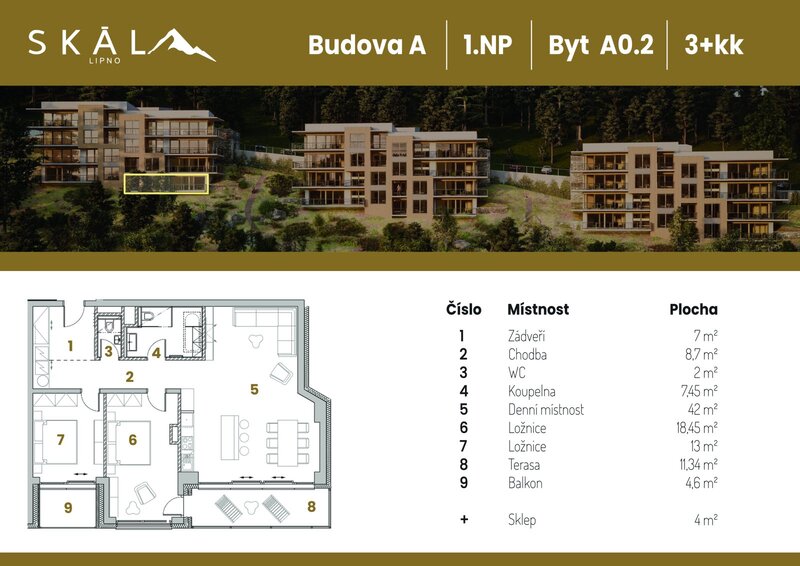 Vzdušný, prostorný a slunný byt, který má z každé obytné místnosti