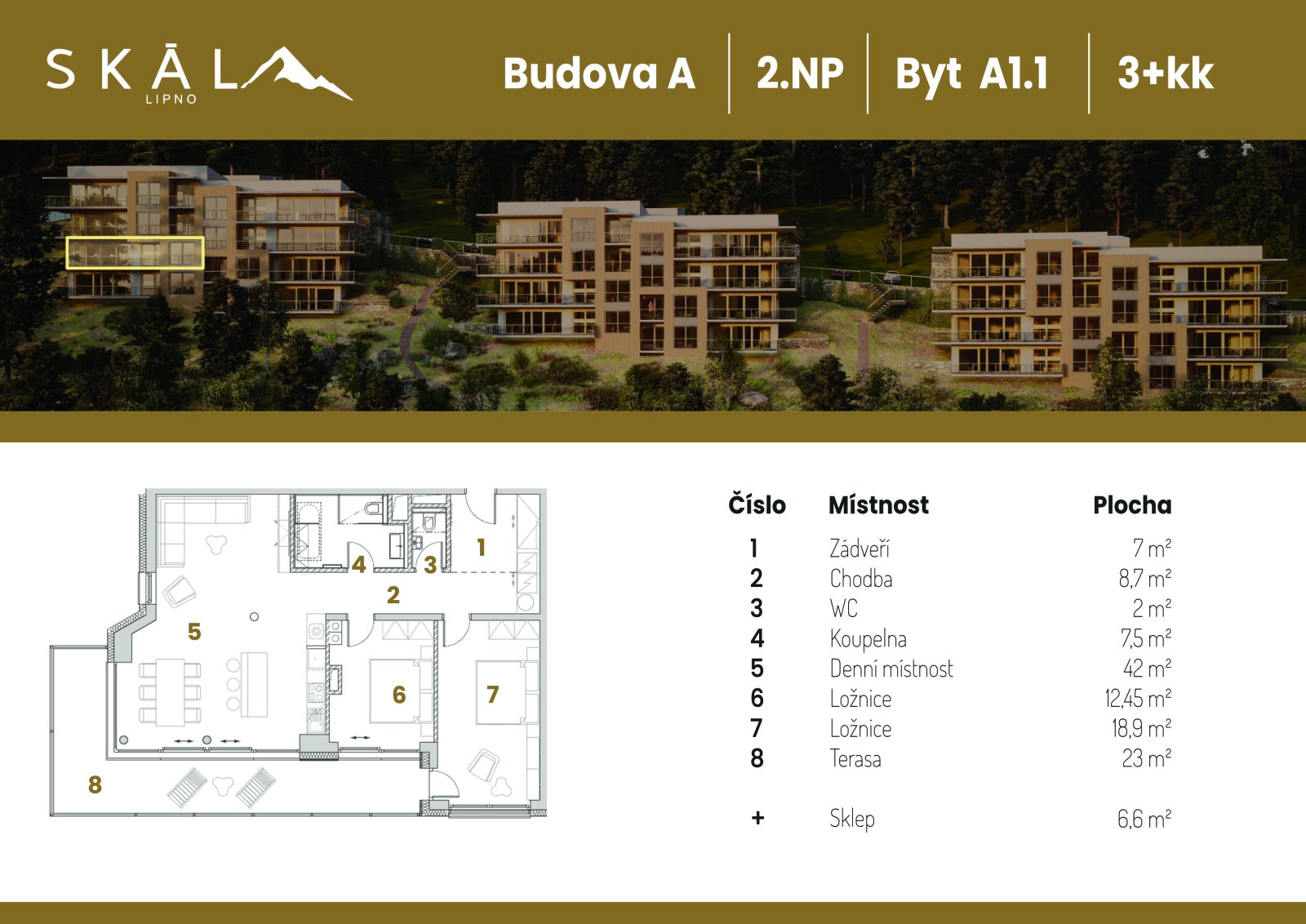 Ke každému bytu lze dokoupit garáž v rozměru 3×6 metrů.