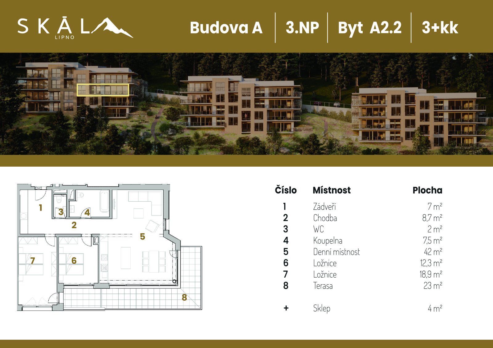 Byt A2.2 - třetí podlaží budova A