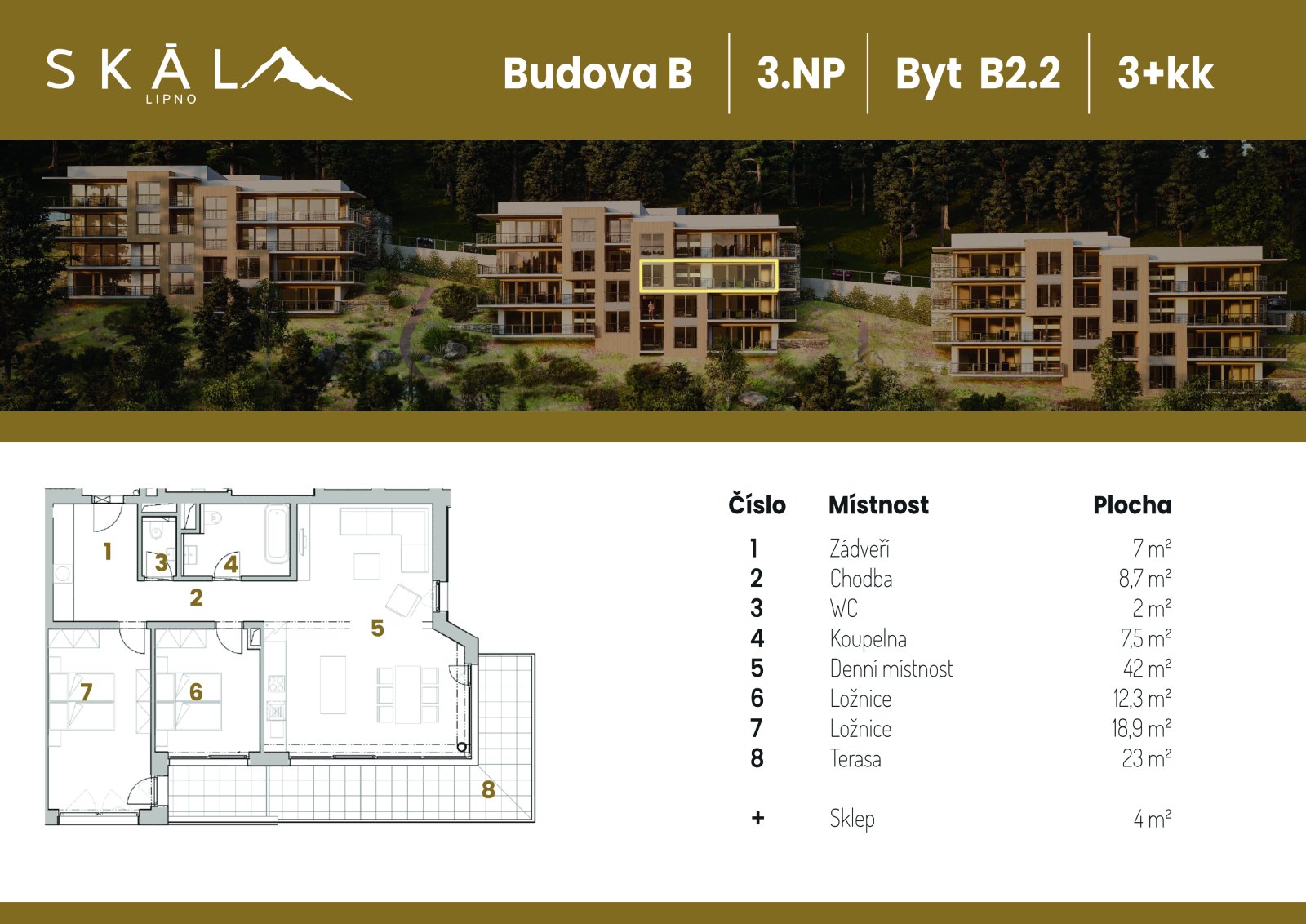 Byt B2.2 - třetí podlaží Budova B