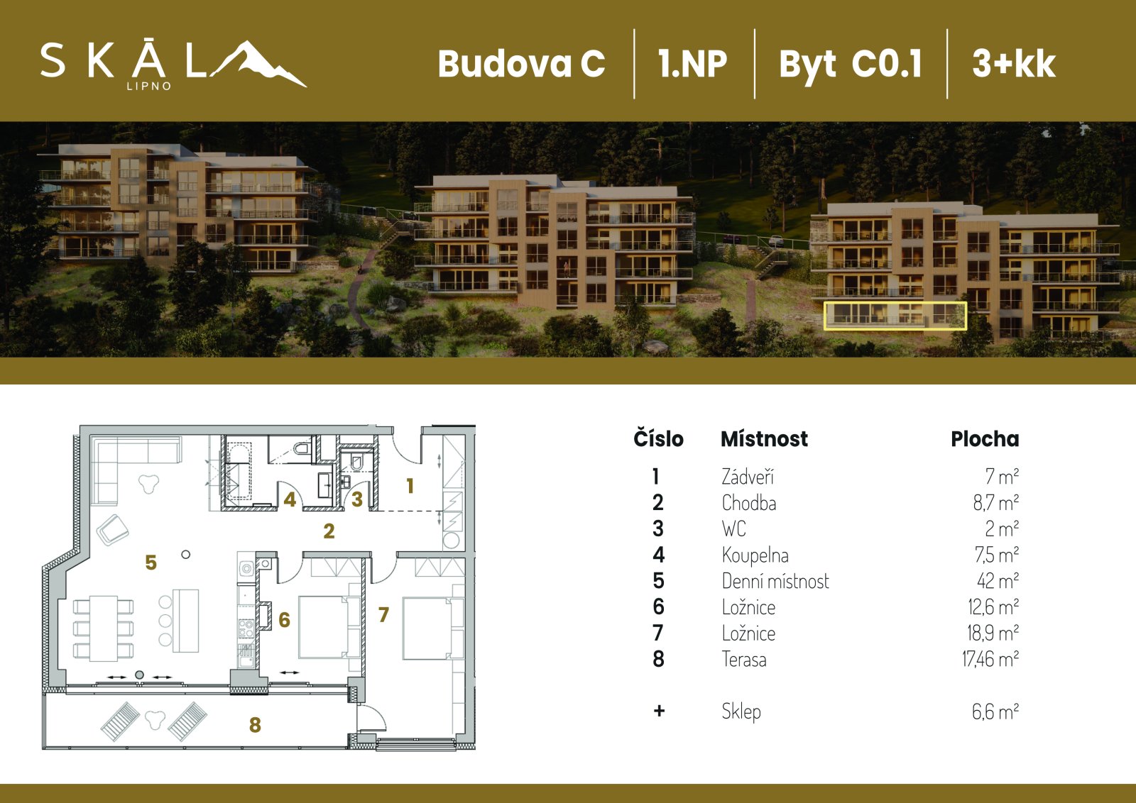 Ke každému bytu lze dokoupit garáž v rozměru 3×6 metrů.