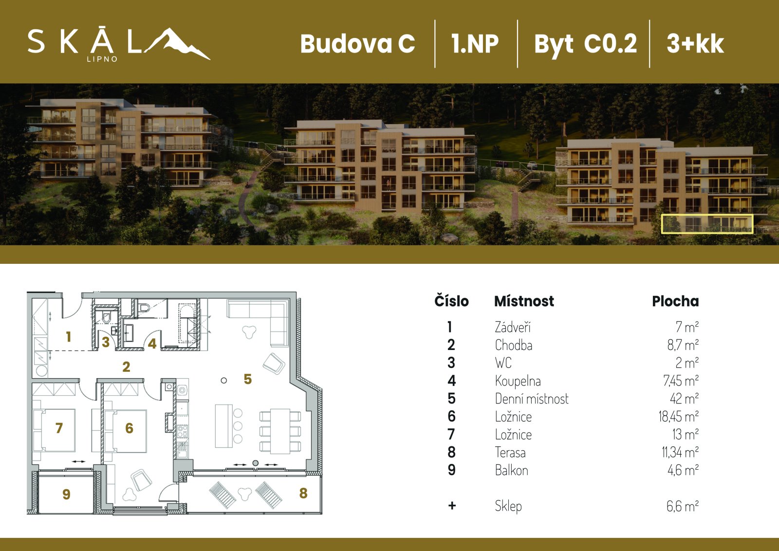 Ke každému bytu lze dokoupit garáž v rozměru 3×6 metrů.