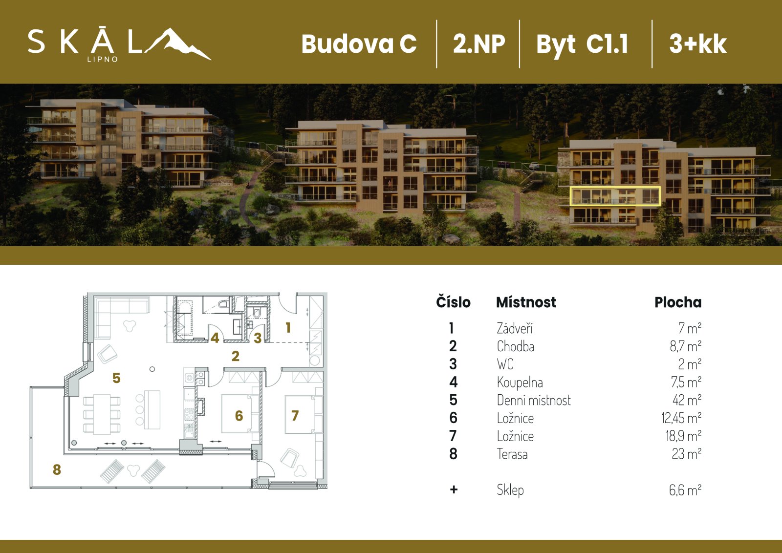 Ke každému bytu lze dokoupit garáž v rozměru 3×6 metrů.