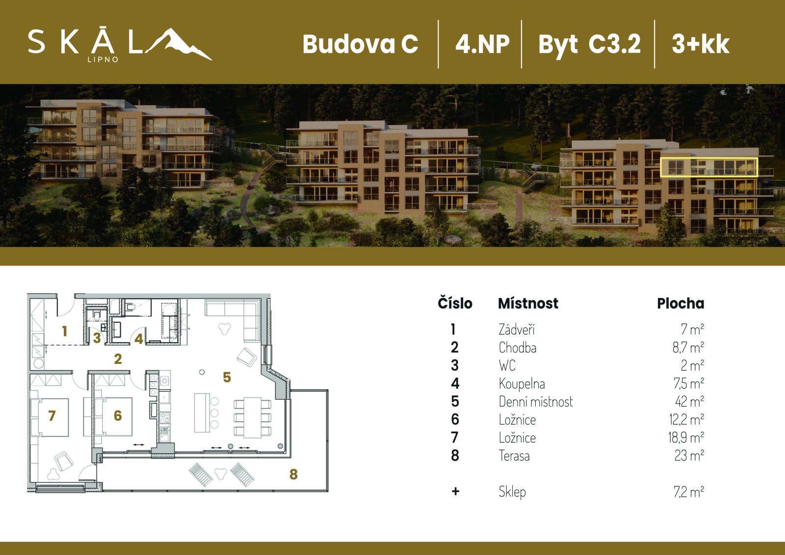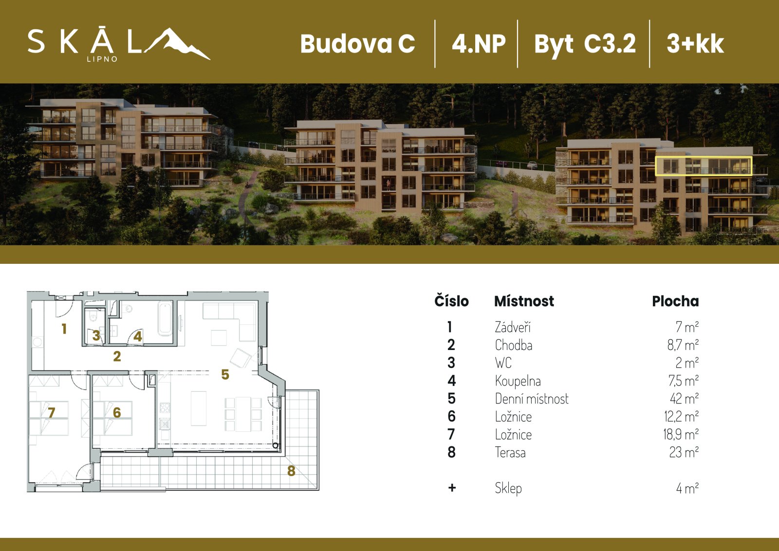 Ke každému bytu lze dokoupit garáž v rozměru 3×6 metrů.